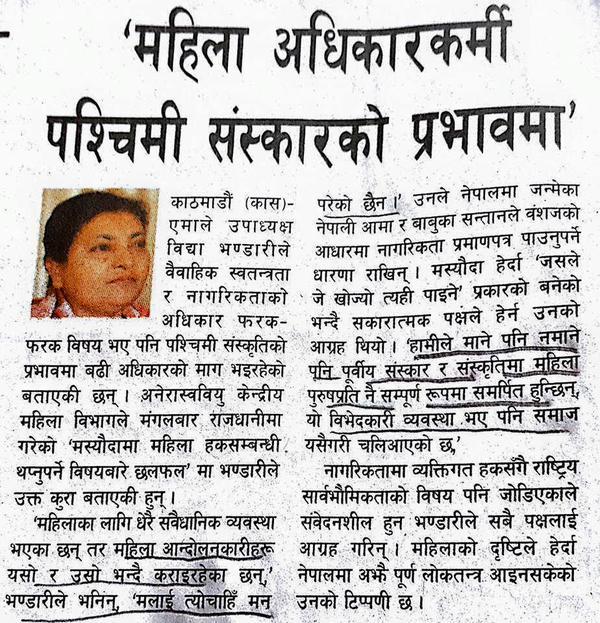 महिला अधिकारको बारेमा विद्या भंडारी जी को छुट्टै धारणा छ । विद्याजी को सोचाईमा पूर्वीय समाजमा महिला हरुको अधिकार पश्चिमी...